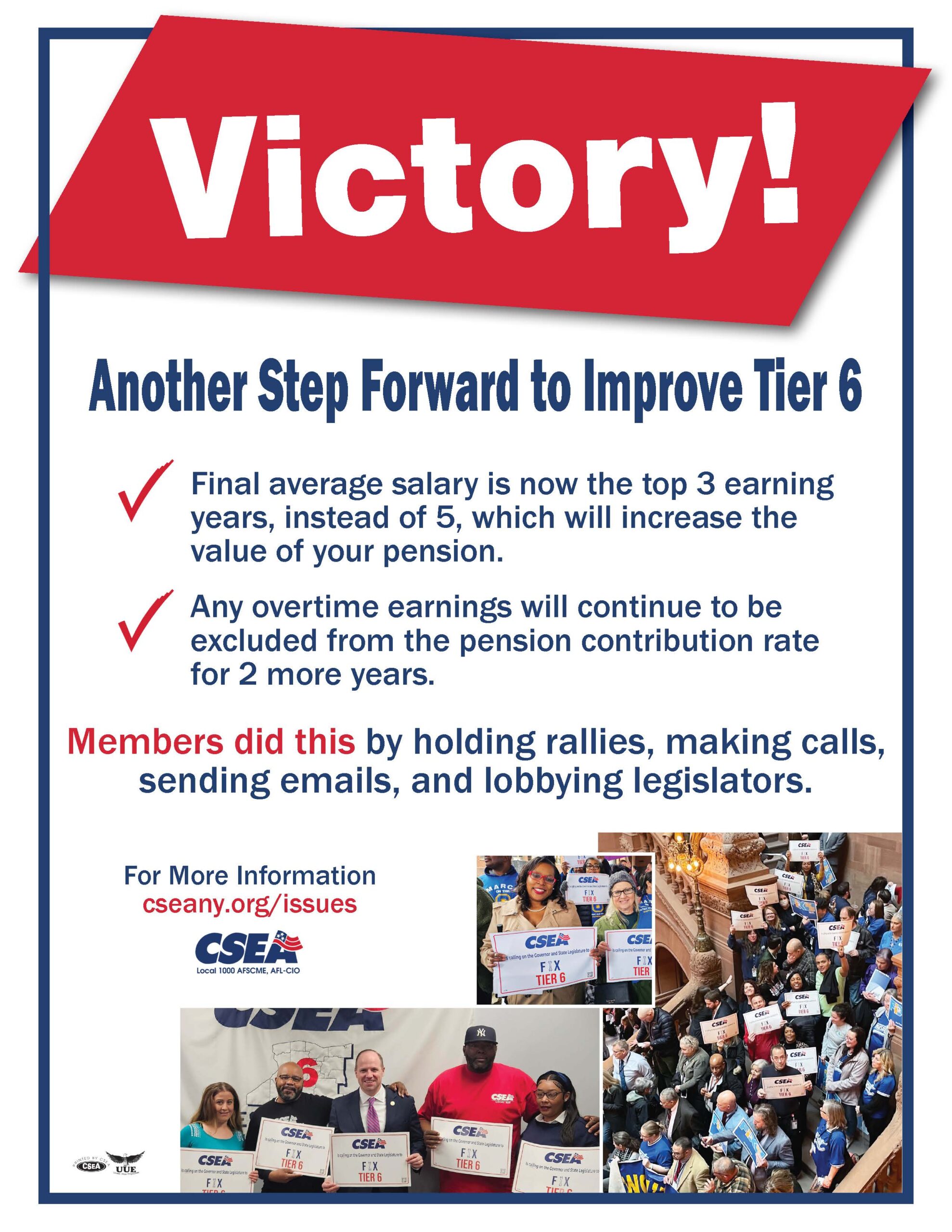 CSEA members across the state have been urging lawmakers to include Tier 6 reforms in the budget.