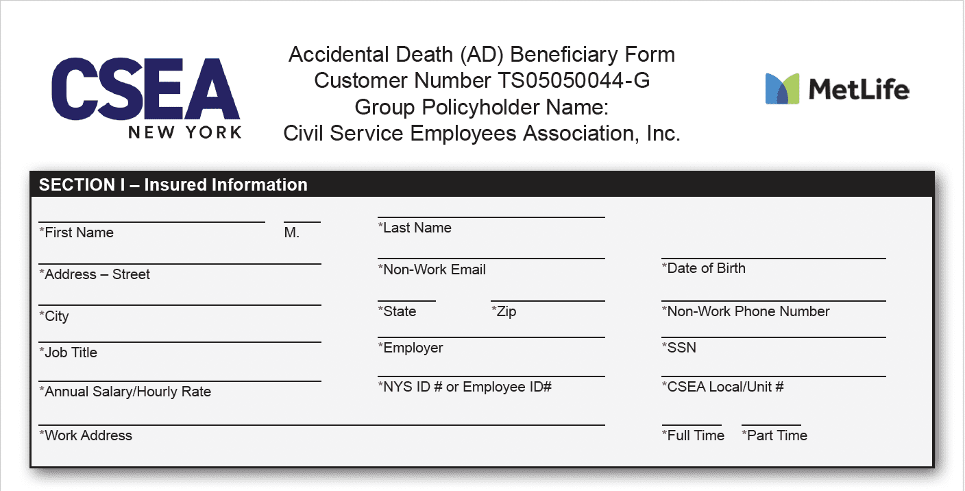 Be sure to complete the above beneficiary form so this benefit goes to who YOU designate. This form will ensure we have your most current information in the event of an accidental death claim.