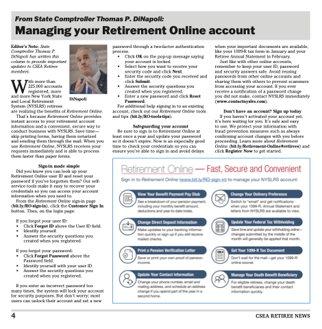 fraud prevention measures such as always confirming account changes with you before proceeding. Learn more about Retirement Online (bit.ly/Retirement-Online#retirees) and click Register Now to get started.