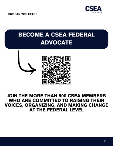 JOIN THE MORE THAN 500 CSEA MEMBERS WHO ARE COMMITTED TO RAISING THEIR VOICES, ORGANIZING, AND MAKING CHANGE AT THE FEDERAL LEVEL