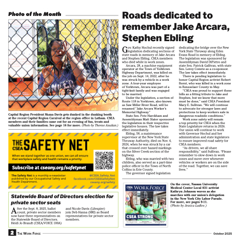 a top priority for CSEA when the State Legislature returns in 2026. Our union will continue to work with Governor Hochul and her administration and state legislators to ensure improved road safety for CSEA members.