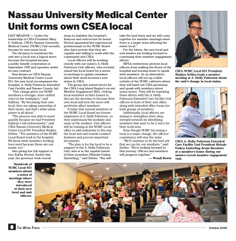 E. Sullivan, CSEA’s Nassau University Medical Center [NUMC] Unit recently became its own union local.