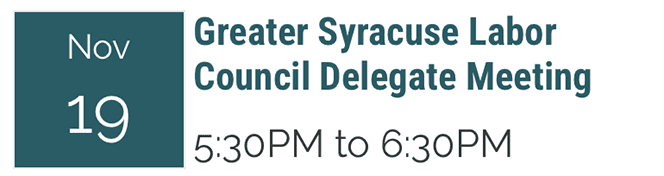 Meeting located in Teamsters 317 Hall, 566 Spencer St., Syracuse, NY, 13204.