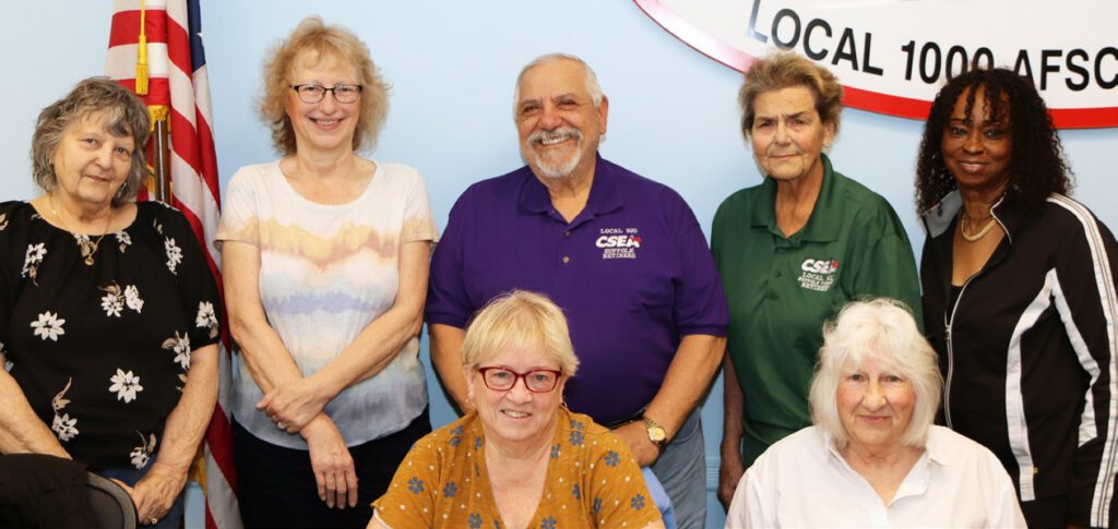 CSEA Suffolk Area Retirees Local 920 members recently volunteer to make wellness calls to retirees. In addition to checking on how they are doing, callers reminded members of upcoming meetings. Pictured, from left, seated are Kathy Koop and Susan Ashworth. Back row, from left, are Gloria Eichele, Laura Werkheister, local Delegate Nick LaMorte, Local 920 President Millie Lucas and Local Treasurer Rutha Bush.