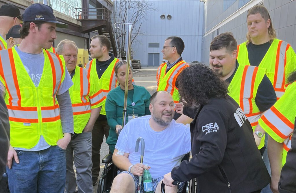 Acum was released from the hospital almost two weeks later. He was surprised to find his fellow DOT local members lining the hospital exit, clapping and cheering as a nurse, who is also a CSEA member, escorted him to his car. As a sign of respect, Acum received a police escort home.