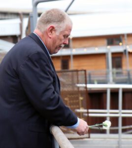 Western Region President Steve Healy drops a carnation into the water in memory of fallen veterans at the region’s Veterans Day ceremony in Buffalo.