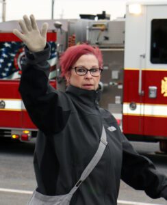 SUNY Upstate Medical Local 1st Vice President Michele Martin waves to the crowd at the Syracuse Veterans Day Parade.