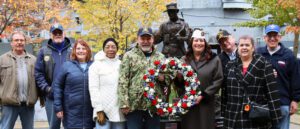 Western Region Veterans Committee members present the wreath from the Veterans Day Ceremony at a nearby memorial in the Buffalo and Erie County Naval and Military Park