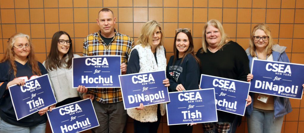 CSEA recently endorsed Gov. Kathy Hochul, Comptroller Tom DiNapoli and Attorney General Letitia James for re-election, citing their strong records of standing with and fighting for CSEA members.