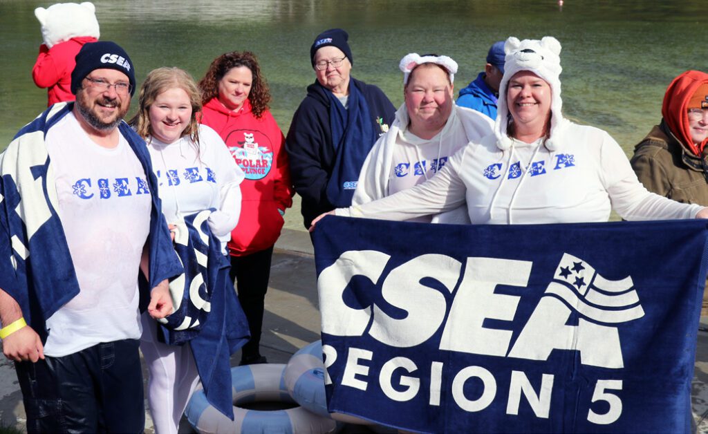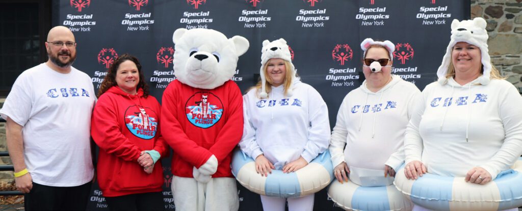 CSEA members from Broome DDSO, Broome County, SUNY Binghamton, Binghamton Schools, and Otsego County joined together at the Binghamton Polar Plunge to celebrate raising money for Special Olympics New York. Our teams helped the plunge event raise nearly $20,000 for Special Olympics athletes.