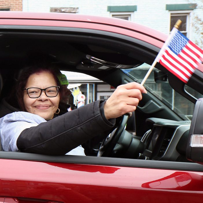 Secretary Shavon Foskey wave flags on Washington Avenue