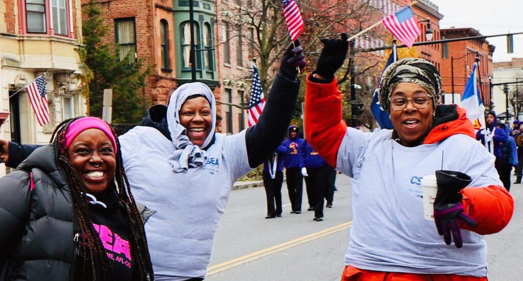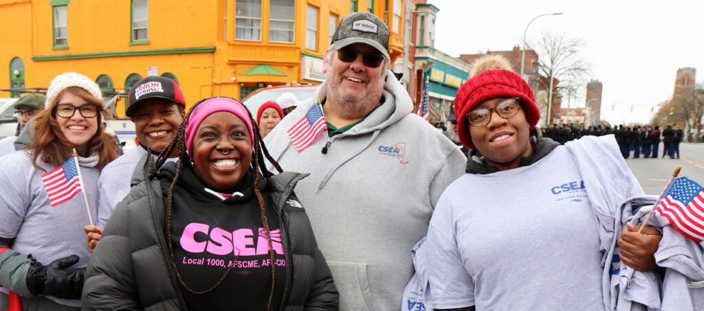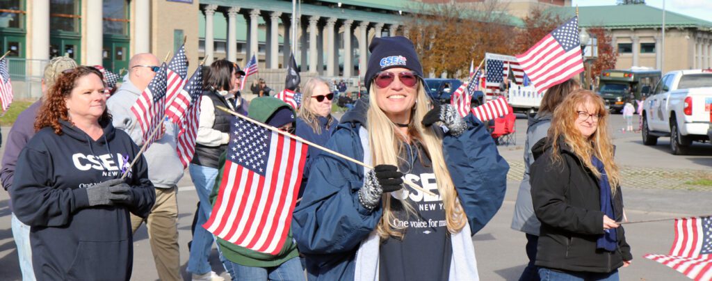 CSEA members marched in Veterans Day parades at the New York State Fairgrounds in Syracuse and Albany.