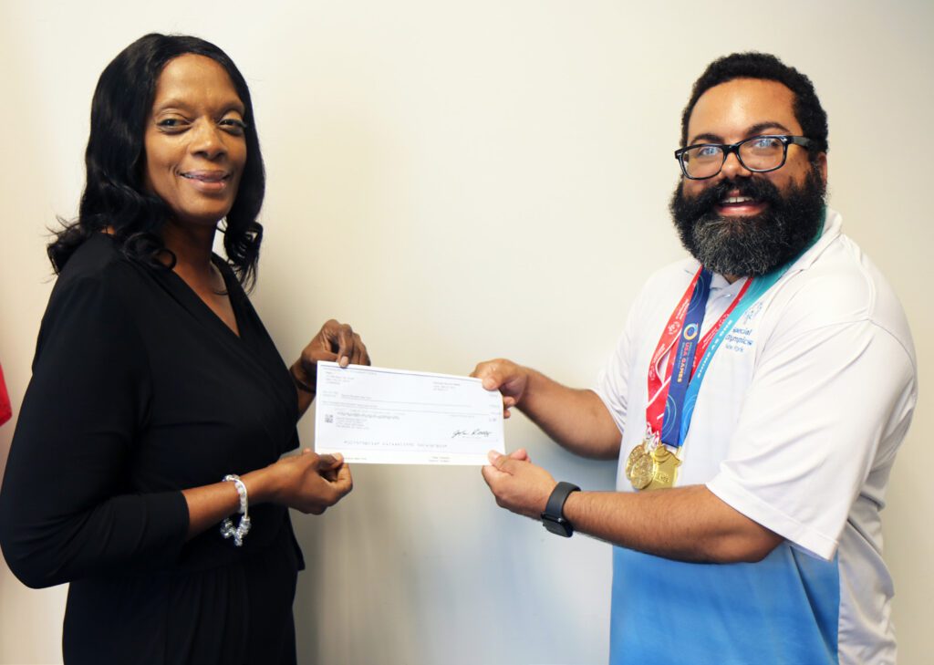 Accepting the check on behalf of Special Olympics New York was athlete Matt Graham.
