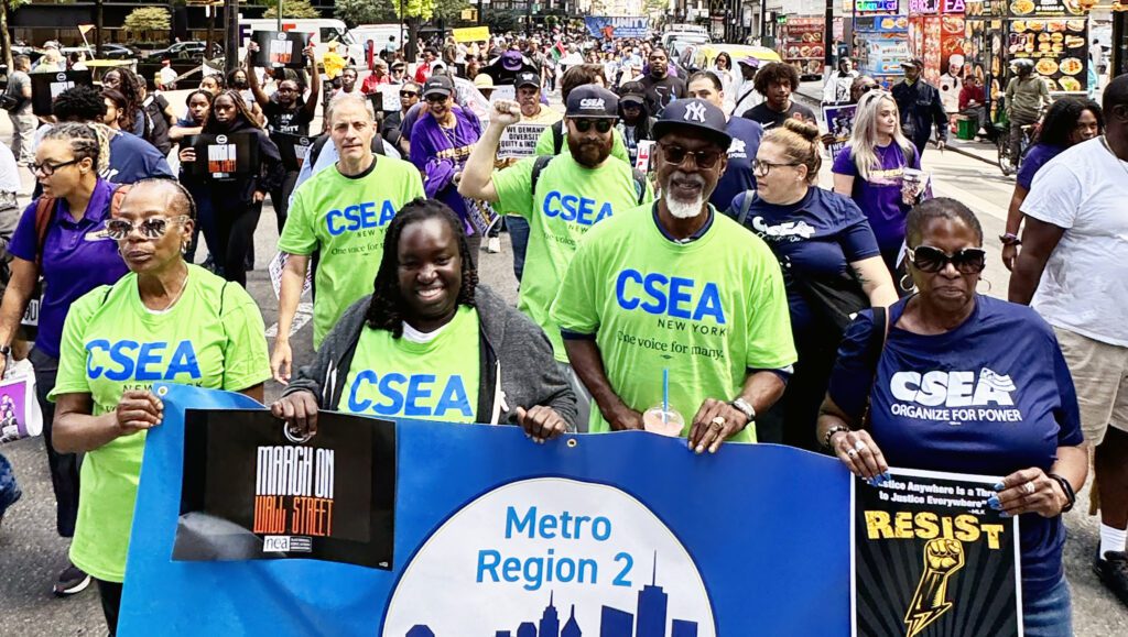 CSEA members joined other members of our international union, AFSCME, and other march attendees from across the country in demanding economic justice, protection of diversity, equity, and inclusion (DEI) and accountability from corporate and political leaders.
