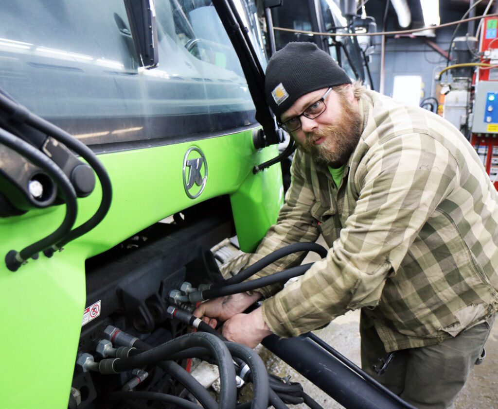 Jeremy Roblee, a lift mechanic, upgrades carriers on a beginner-level hill.
