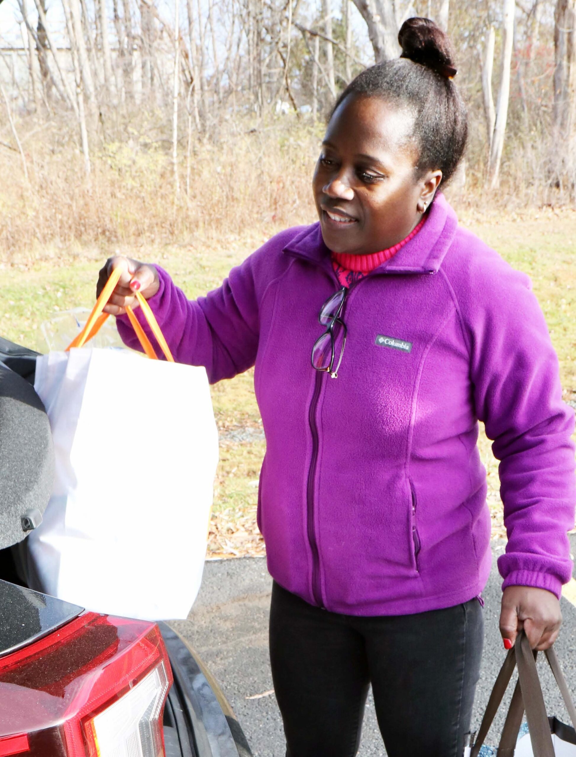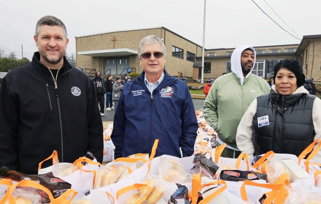 CSEA members joined DCCC food pantry employees and community volunteers to distribute hundreds of food bags containing turkeys, fruit, dinner rolls, canned goods, pies and more.
