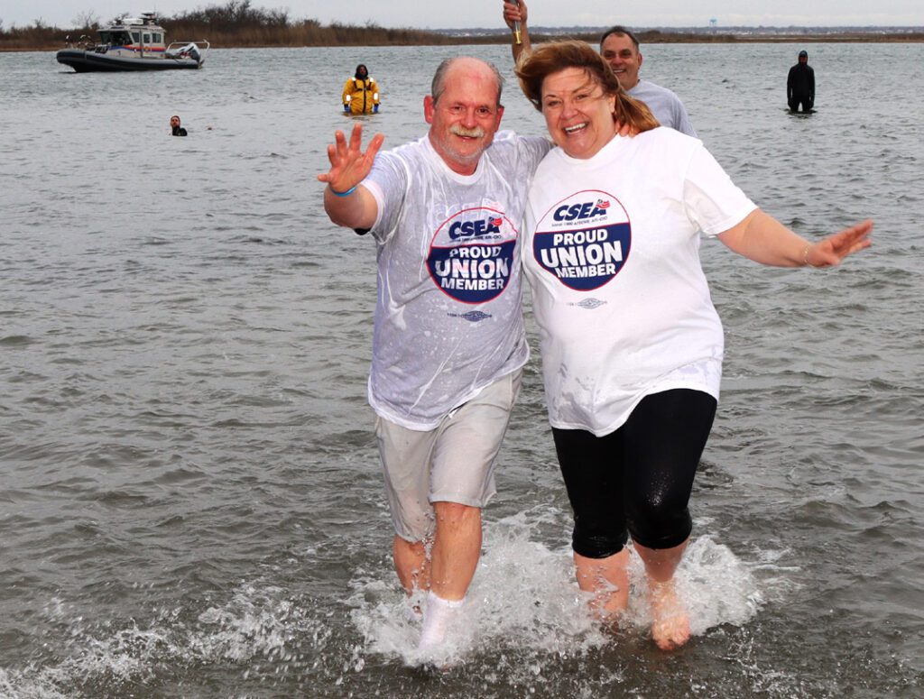 MASSAPEQUA — Cold, damp weather conditions did not stop CSEA Long Island Region members from “freezin’ for a reason” at the Town of Oyster Bay Polar Plunge, held at Tobay Beach, which the town owns and manages.