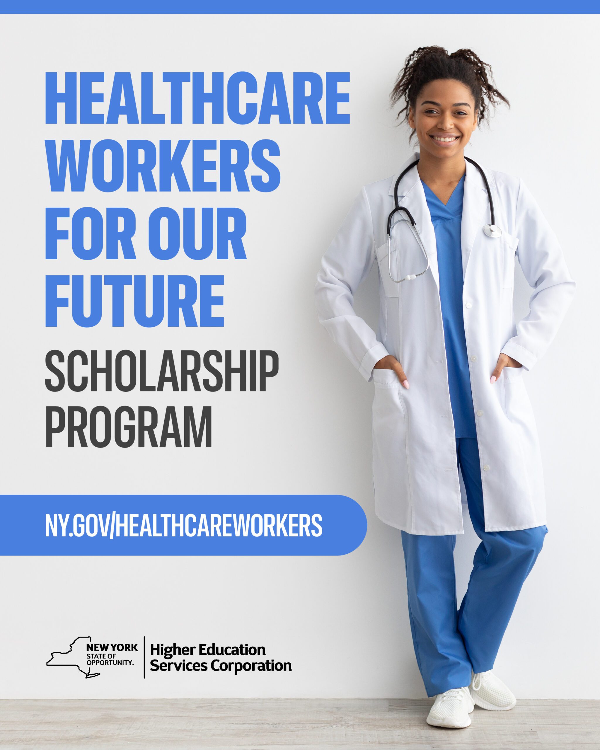 To enter the Healthcare Workers for Our Future Scholarship drawing, participants can complete an online entry form. Recipients of the scholarship must agree to work in an underserved area in NYS as Registered Nurses, Respiratory Therapists, Clinical Laboratory Technologists, Radiologic Technologists, or Surgical Technologists for two years upon graduation.