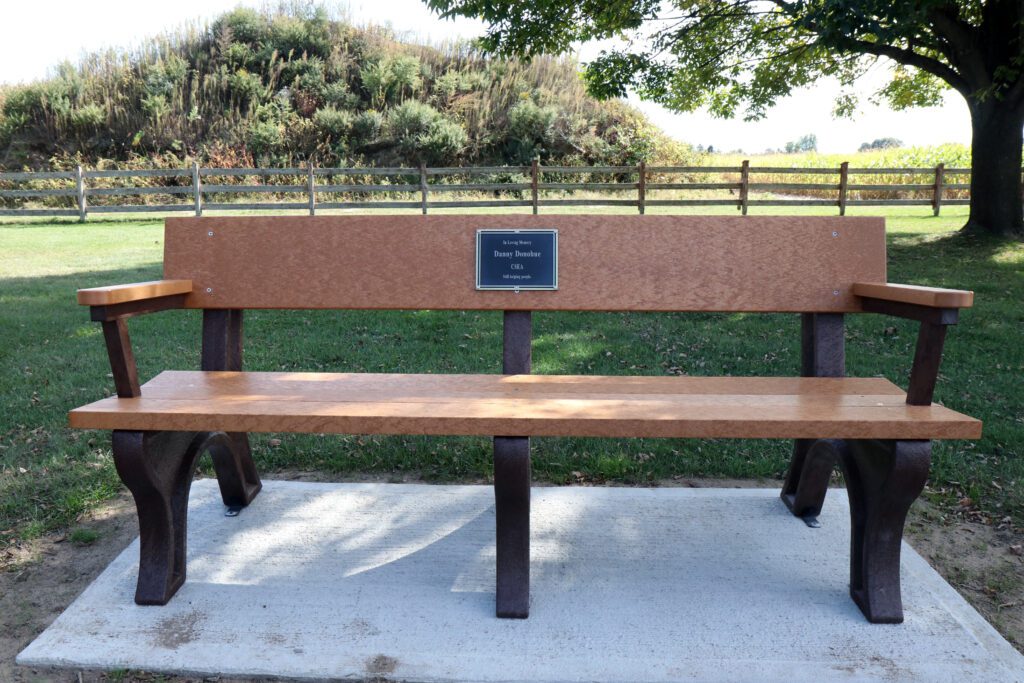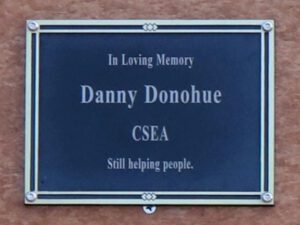 “It was emotional the morning we installed the bench,” said Alund. “The idea that we are CSEA members working to put in the memorial to someone who worked so hard on behalf of workers and was so special to us. We started [installing] the bench for Danny first thing that morning. The bench backs to the east. There was a light coming through the field, shining directly on the bench. It was a special moment.”