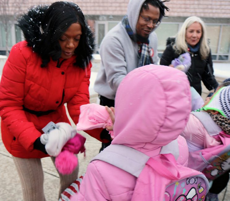 The Walking School Bus program at Schenectady’s Martin Luther King Elementary school is staffed by volunteers who are also CSEA members working for the district. Kids who are habitually tardy or absent are identified for pickup.