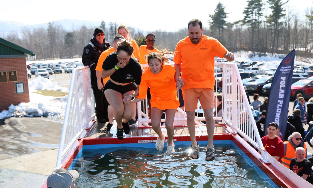 While prior team members spent over 15 years jumping each year into the lake at Camp Mariah in Fishkill, this year’s event instead involved a mobile plunge pool that Special Olympics recently unveiled for plunges in the New York area. Having the pool allowed the organization to spread the event over three days, hosting plunges at three different locations in Dutchess County.