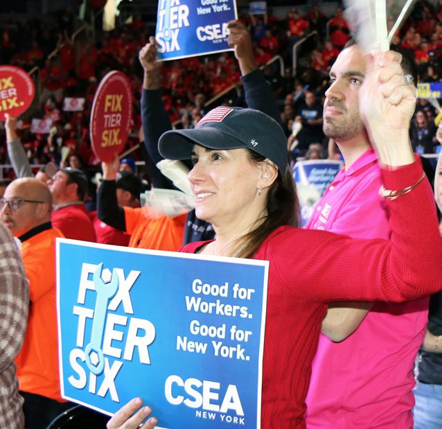 ALBANY — On March 8, CSEA members from across the state stood alongside labor families and friends at the Fix Tier 6 rally to advocate for changes to an unequal system.