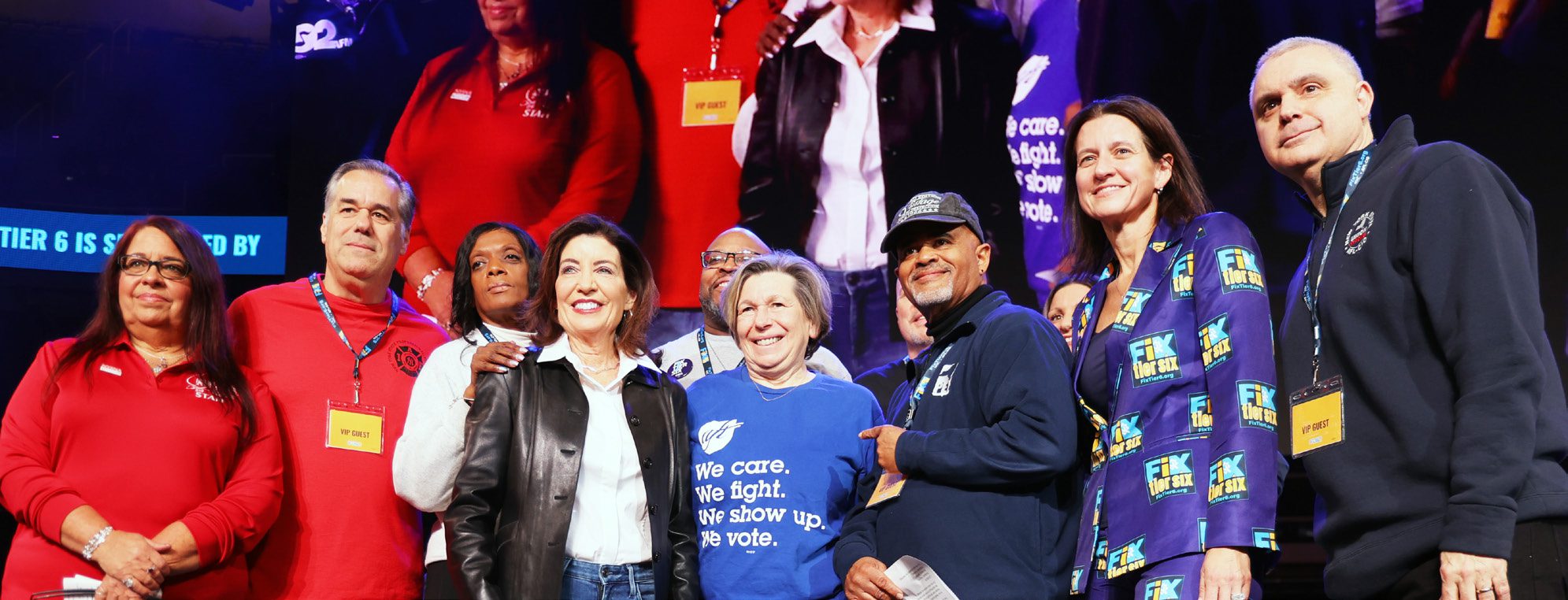 More than 15,000 members from CSEA, the New York State United Teachers (NYSUT), United Federation of Teachers (UFT), the American Federation of Teachers (AFT), the New York State Nurses Association (NYSNA), the New York State Professional Firefighters Association (NYSPFFA), and other public service unions filled the MVP Arena in a historic moment for both reform and solidarity.